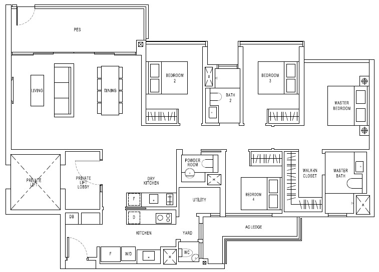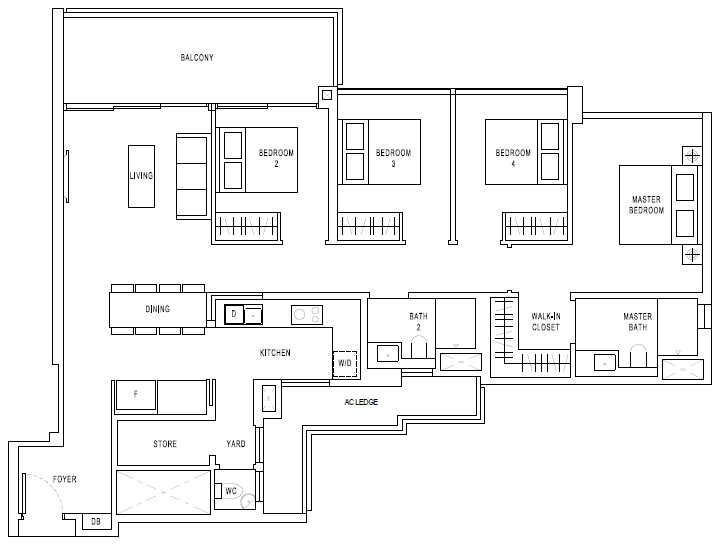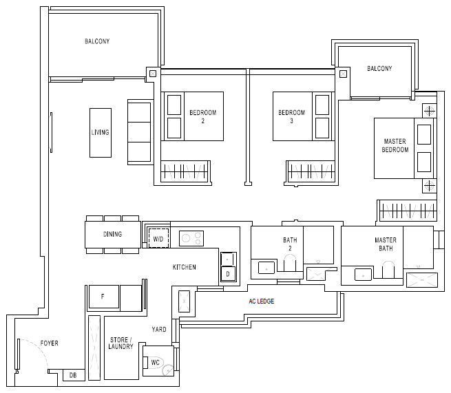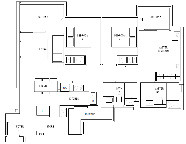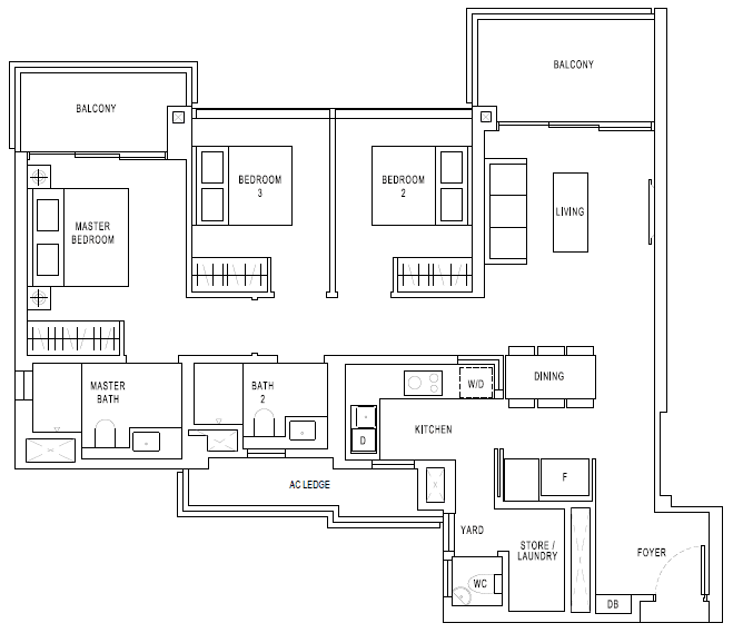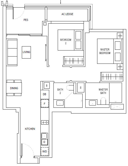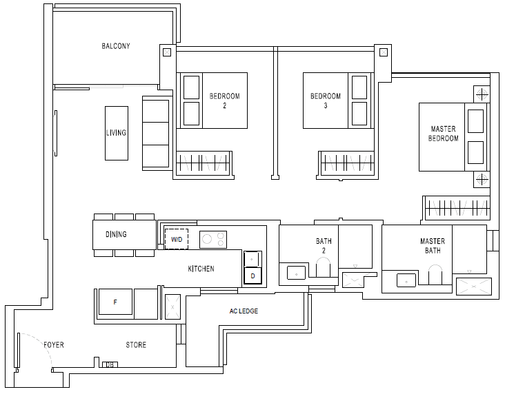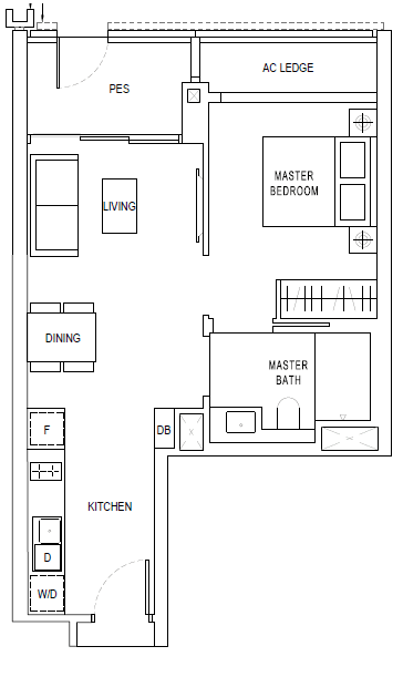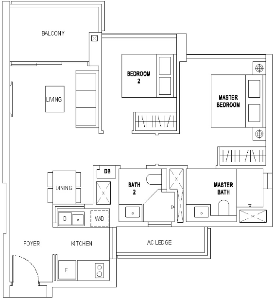 | 2 Bedroom (D) | 958 - 1163 | 94 |