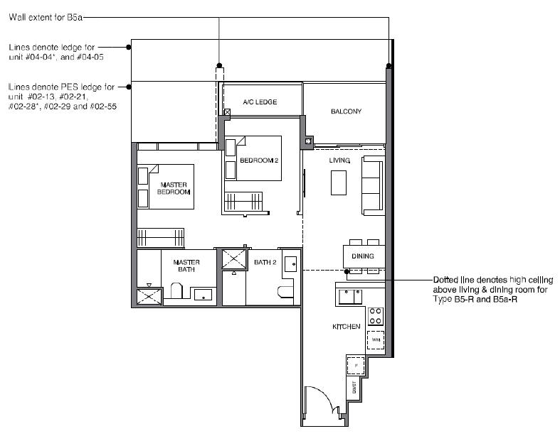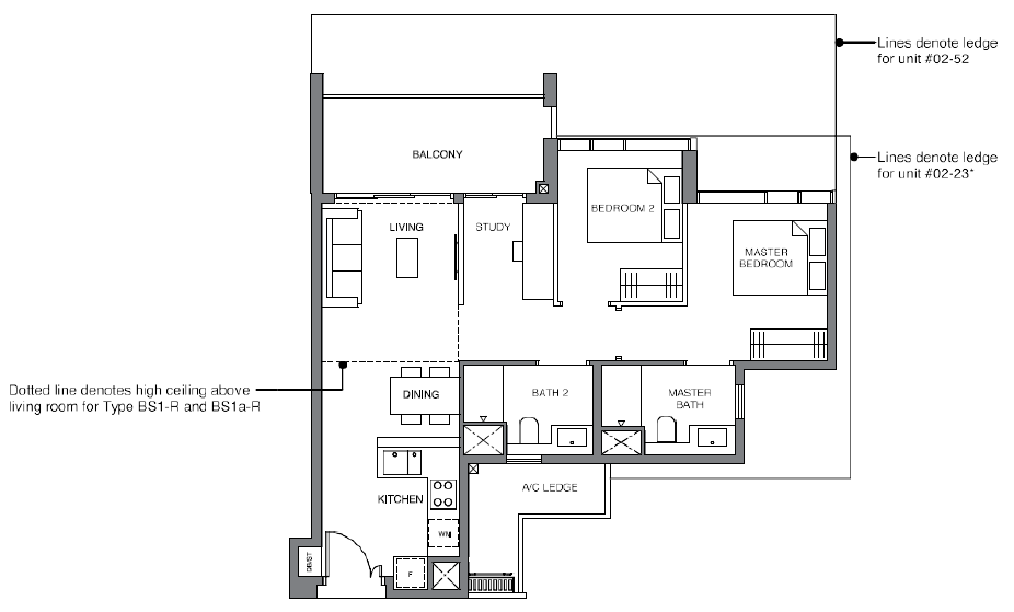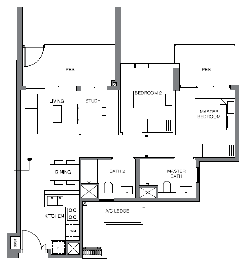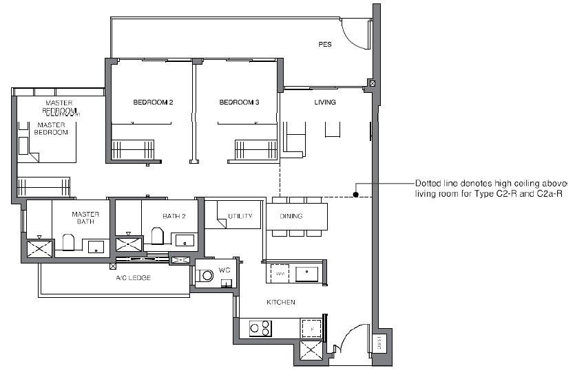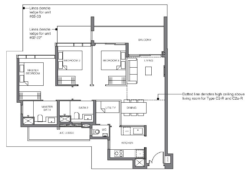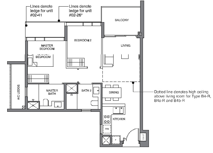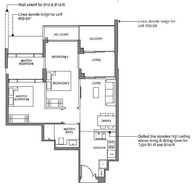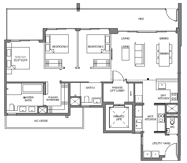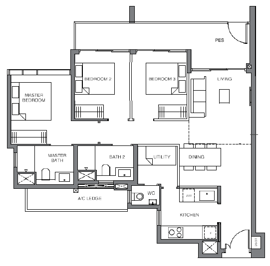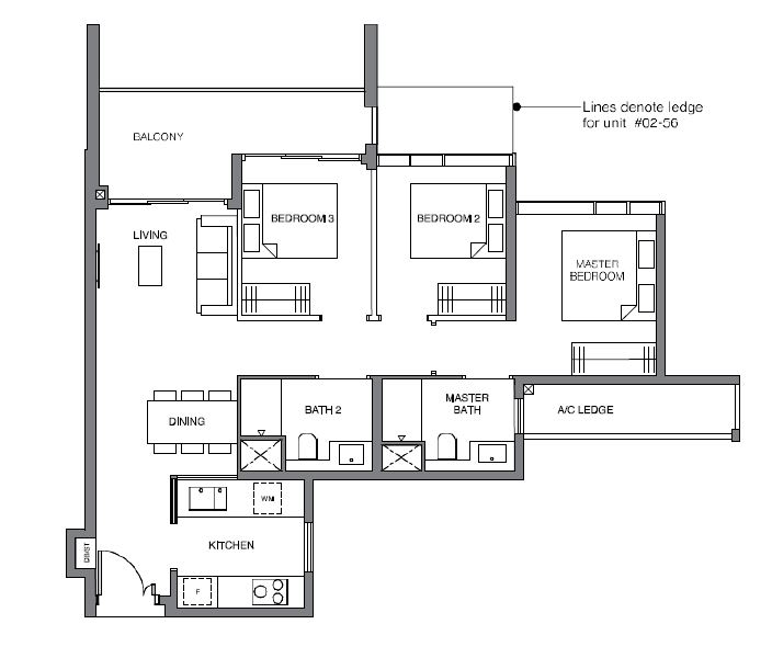 | 3 Bedroom (E) | 1044 - 1163 | 45 |